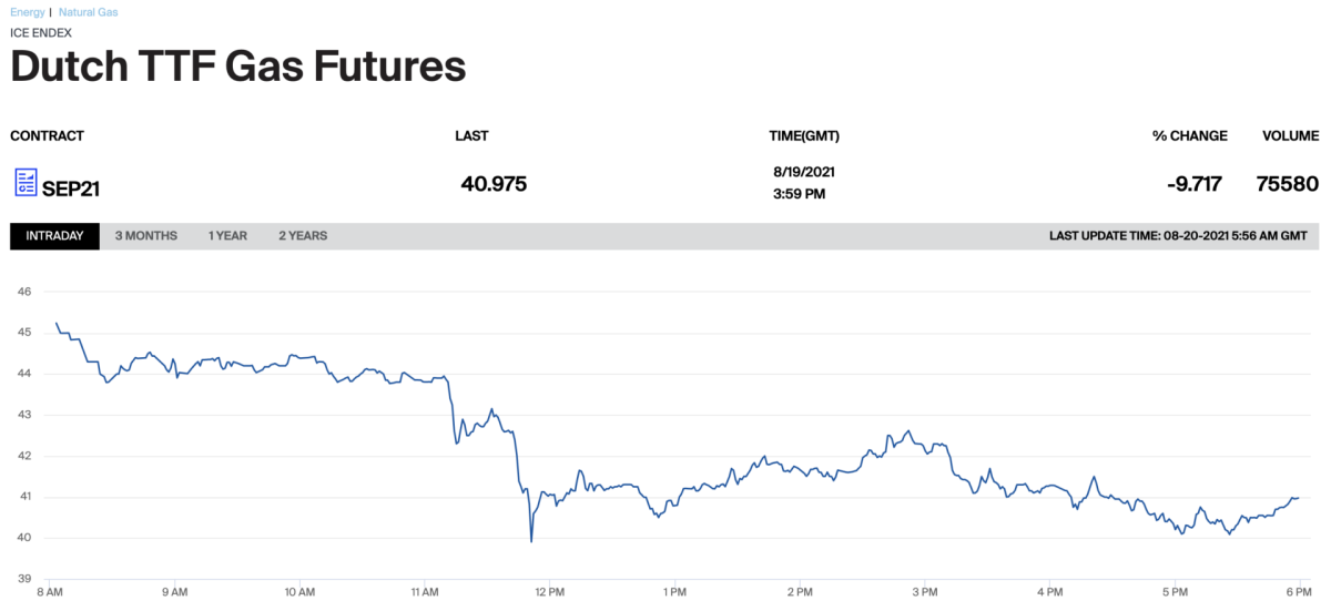 Tarde o temprano tenía que pasar. Era insostenible la situación que se estaba viviendo este agosto en los mercados energéticos con continuos récords de precios en todos los ámbitos, gas, electricidad, CO2, petróleo,...Tuvo que venir Gazprom a echar una mano con todo lo que ha hecho y deshecho durante estos últimos 12 meses. Pero ahí está su poder en los mercados. Anuncia que antes de que acabe el año va a comenzar a inyectar gas a través de Nord Stream2 rumbo a Alemania, e inmediatamente el precio del gas comienza a bajar.