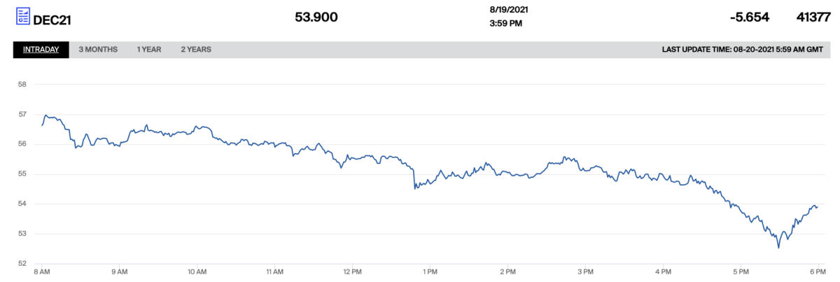 Esta caída del precio del gas también arrastró al mercado ETS europeo donde se negocian los derechos de emisión de CO2. El precio del carbono para su vencimiento en diciembre también cayó pero no con tanta fuerza. El precio cayó un 5,65% hasta los 53,90 euros por tonelada.
