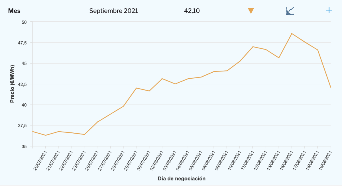 En solo un día ha alcanzado los niveles de hace 10 jornadas. Es cierto que porcentualmente a lo mejor no es tanto, pero ver una caída de casi 8 €/MWh en un trimestre es una barbaridad.