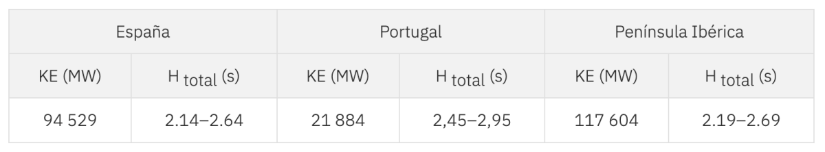 En el caso de España, la inercia estuvo entre 2.14 y 2.64 mientras que en Portugal en el rango entre 2.45 y 2.95, lo que dejó para todo el sistema peninsular una inercia de 2.19-2.69.