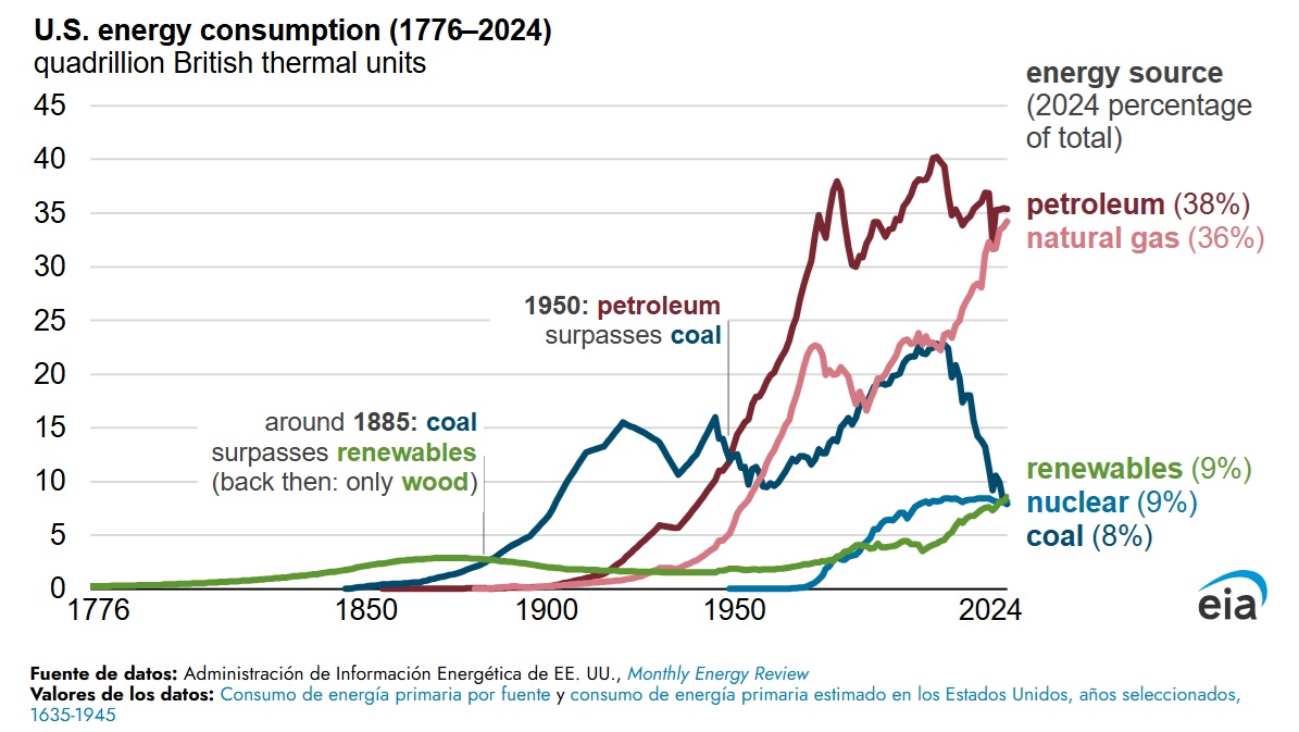 Así ha cambiado el consumo de energía en Estados Unidos desde 1776