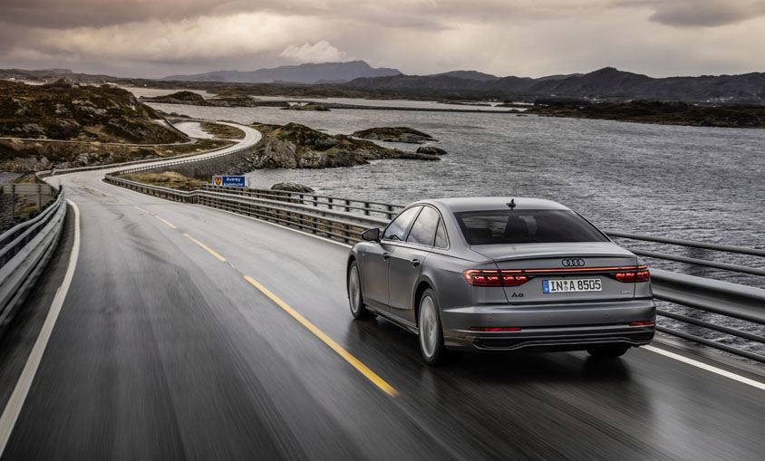 Disponible en su dos carrocerías, corta y Larga (A8 L), la principal novedad es el incremento del rendimiento conjunto en 13 CV, declarando ahora 462 CV y dejando intacto su par máximo de 700 Nm. De esta forma y excepción de S8 en su batalla corta estaríamos hablando del A8 más potente de todos. De hecho lo es en su carrocería larga dada la inexistencia de un S8 L.