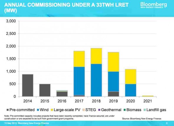 Las inversiones en proyectos de energías renovables en todo el mundo aumentaron un 10 por ciento en 2014, mientras que en Australia cayeron de 2.100 a 330 millones de dólares (1.948 a 306 millones de euros), de acuerdo con un informe del mes pasado del Programa de la ONU para el Medio Ambiente (PNUMA).