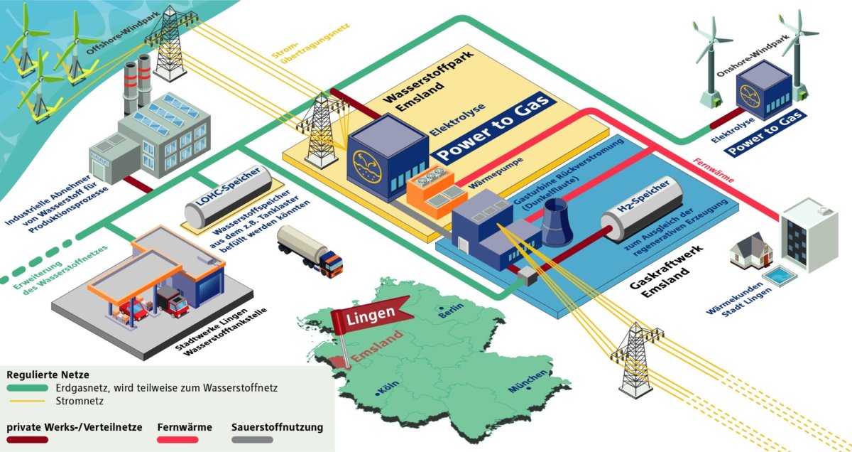 Junto con BP, Siemens y RWE los otros socios del proyecto son ENERTRAG, Stadtwerke Lingen, Hydrogenious LOHC Technologies, OGE, Evonik, Nowega, así como Forschungszentrum Jülich e IKEM - Instituto de Protección del Clima, Energía y Movilidad, todos los cuales son miembros de la iniciativa GET H2.