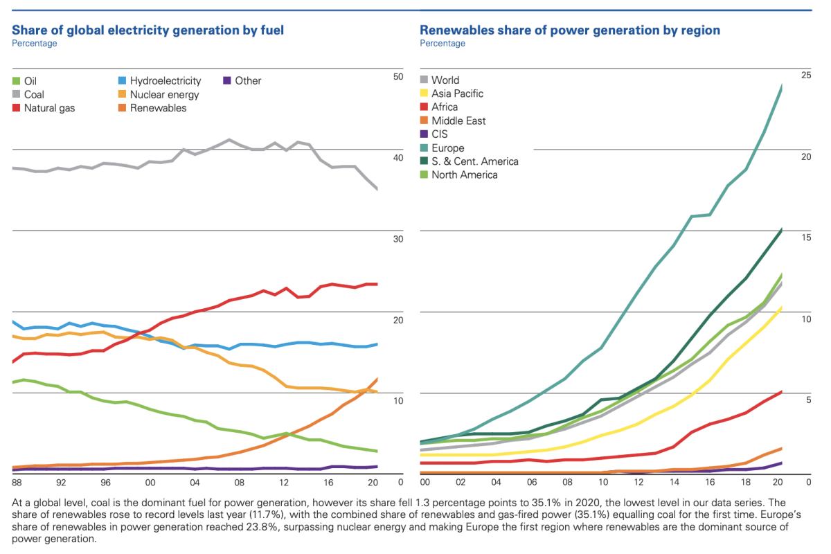 "Resulta alentador que 2020 también haya sido el año en que la participación de las energías renovables en la generación de energía mundial registró el aumento más rápido de su historia, un crecimiento producido en gran medida a expensas de la generación a carbón”, ha explicado Dale. “Estas tendencias son exactamente lo que el mundo necesita ver en su transición hacia las cero emisiones netas: un fuerte crecimiento de las energías renovables que desplace al carbón".
