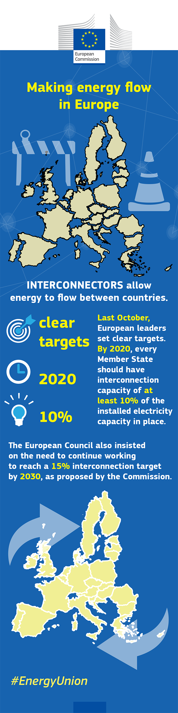 España es uno de los países más beneficiados en la integración de los mercados eléctricos europeos. La planificación de la Comisión Europea de proyectos de interconexiones eléctricas asegura que España al menos obtendrá financiación europea, principalmente Plan Juncker, para sacar adelante dos grandes proyectos que dejarían a España a las puertas de conseguir el objetivo mínimo del 10% de interconexión.