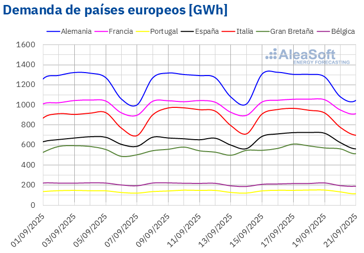 Para la semana del 22 de septiembre, según las previsiones de demanda de AleaSoft Energy Forecasting, la demanda aumentará en los mercados francés, británico y belga. Sin embargo, en los mercados portugués, español, alemán e italiano se espera que la demanda descienda.
