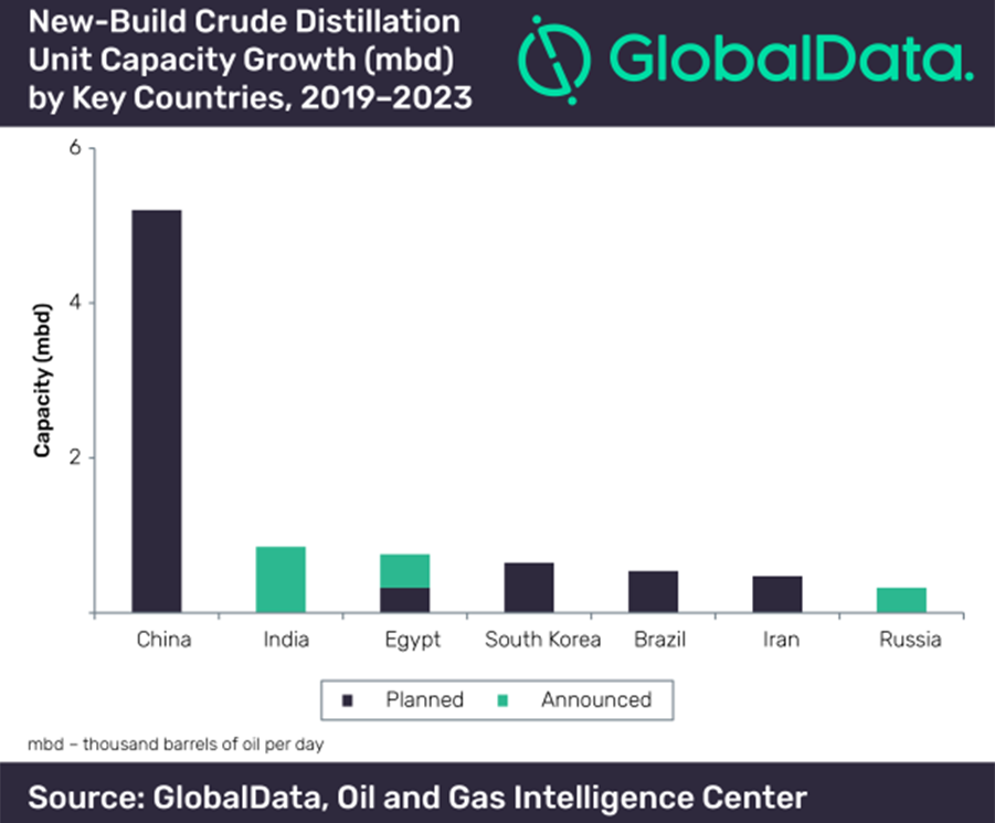 Se espera que China participe con un 34% en el crecimiento de la capacidad de refino de Asia y Oceanía a partir de proyectos planificados y anunciados de nueva construcción entre 2019 y 2023, según la firma de análisis GlobalData.