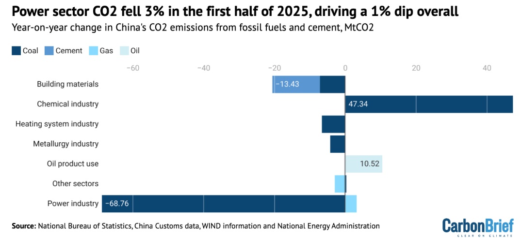 Un estudio de Carbon Brief publicado el jueves encontró que las emisiones de carbono del país disminuyeron un uno por ciento en los primeros seis meses de 2025 en comparación con el año anterior, extendiendo una tendencia que comenzó en marzo de 2024.