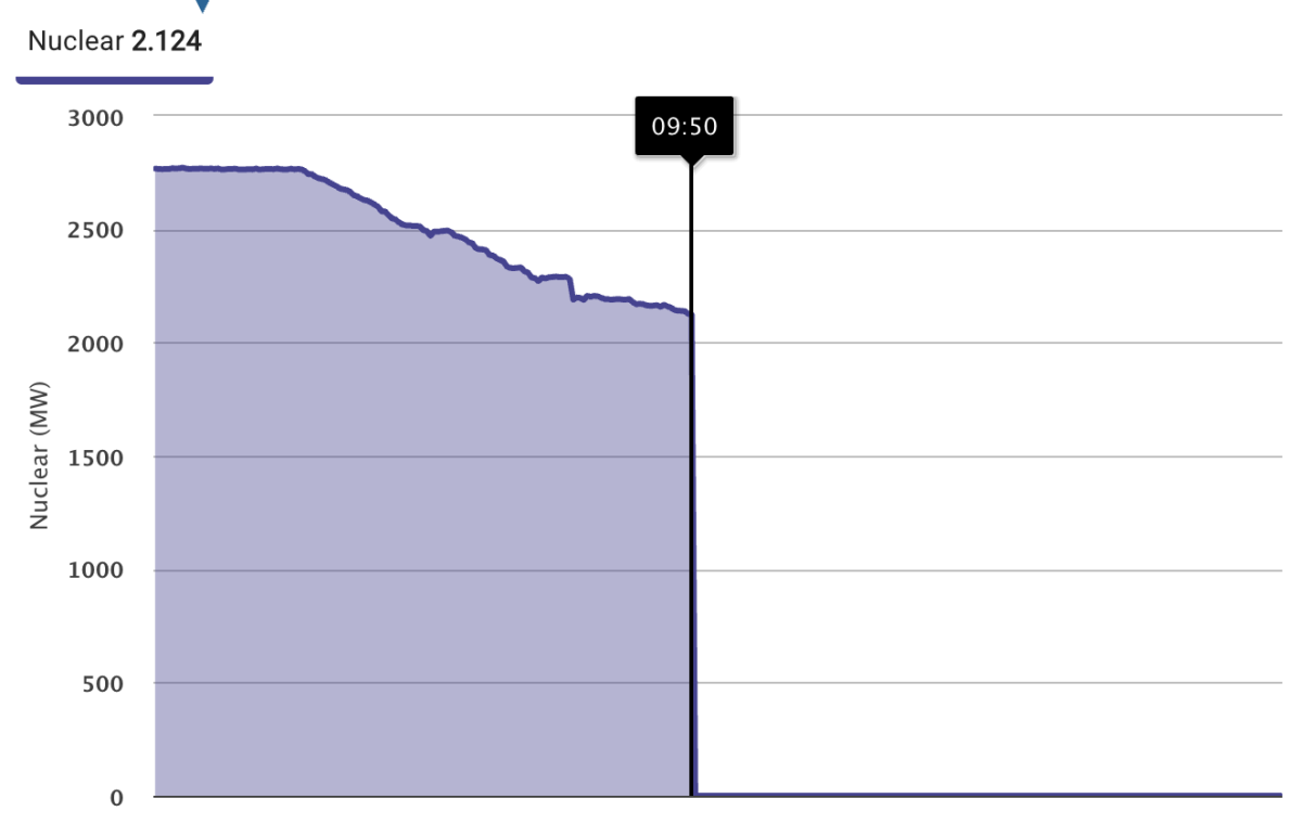 Durante este miércoles la nuclear ha estado a 2.767 MW y se irá a poco más de 2.000 esta madrugada.