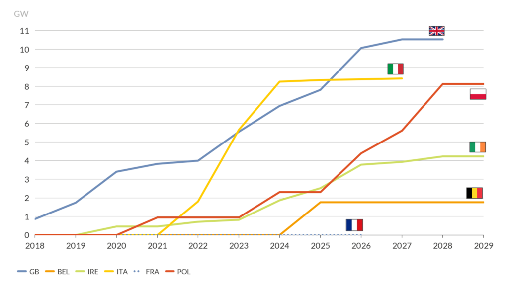 En toda Europa, los Mercados de Capacidad (CM, por sus siglas en inglés) son cada vez más vitales para garantizar la seguridad del suministro a medida que el carbón se retira del sistema, la energía nuclear envejece y las energías renovables se expanden. Aunque los diseños de los CM nacionales varían, las normas de la UE exigen evaluaciones sólidas de adecuación de recursos.