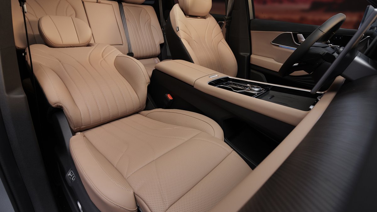 El habitáculo no decepciona en esa búsqueda de la exclusividad: tapicerías en tonos cálidos, amplias superficies en piel, regulaciones eléctricas en todos los asientos (incluyendo las traseras) y una configuración de siete plazas reales, con un sistema eléctrico de desplazamiento longitudinal en la segunda fila que maximiza espacio y comodidad. Destaca el asiento del copiloto con función 'gravedad 0' que permite reclinarlo casi completamente, con calefacción, ventilación y masaje para una experiencia premium a bordo.