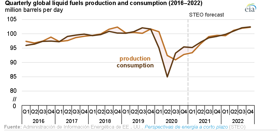 La reducción sostenida de la producción de la OPEP + hasta abril sugiere que la oferta seguirá restringida a corto plazo, incluso si la demanda sigue aumentando. Como resultado, la EIA espera que más retiros de inventarios para satisfacer la creciente demanda de crudo mantendrán elevados los precios del crudo hasta al menos finales de abril. El pronóstico de la EIA sobre la presión a la baja del precio del petróleo y el aumento de la disponibilidad de crudo tiene varias incertidumbres clave.