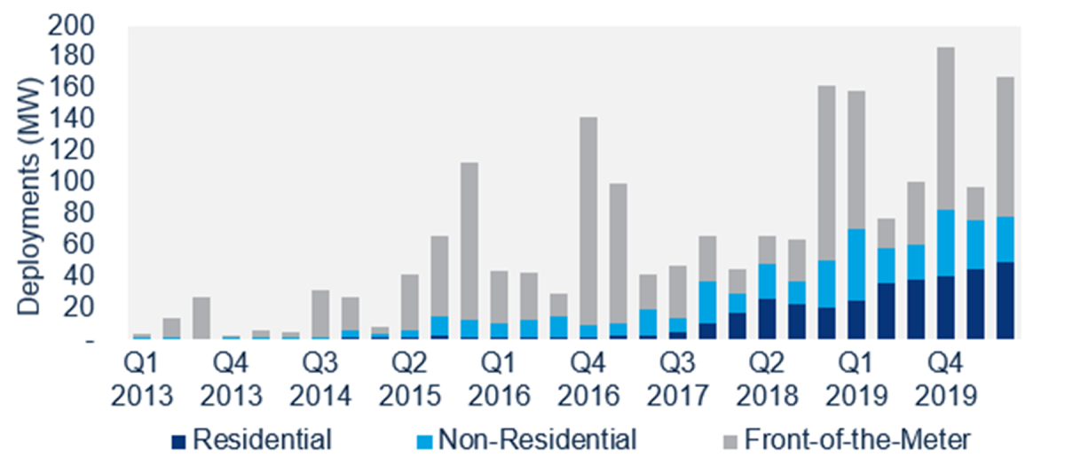 En el segundo trimestre de 2020 se desplegaron alrededor de 168 MW de capacidad de almacenamiento de energía en EEUU, según el último informe 'US Energy Storage Monitor' que realizan Wood Mackenzie y la Asociación de Almacenamiento de Energía (ESA).