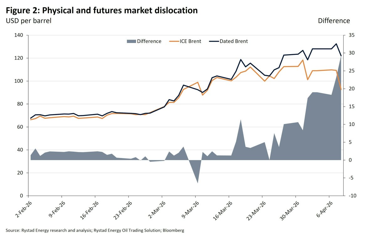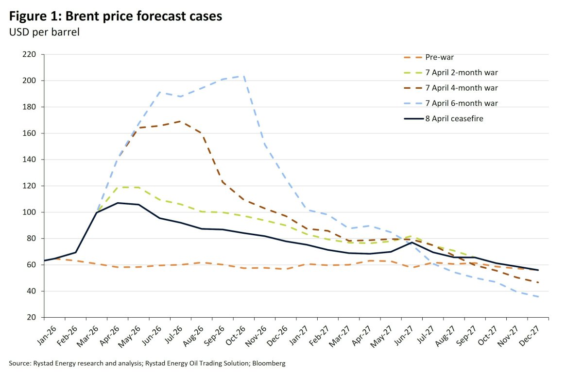 El alto el fuego de dos semanas entre EEUU e Irán ha eliminado la prima de pánico del petróleo, pero no toda la prima de riesgo. Los precios no vuelven a los niveles previos a la guerra debido a la magnitud de la disrupción y a los mecanismos de eliminación de atrasos que tardarán en normalizarse. Los futuros se han movido y, como resultado, Rystad Energy ha reducido su precio medio del Brent de 97 a 87 dólares para 2026. Sin embargo, es poco probable que la escasez en el mercado físico de barriles se resuelva a corto plazo.
