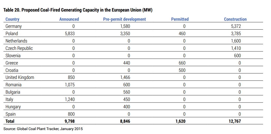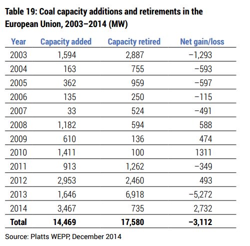 Una serie de políticas de la UE están impulsando el cierre de la generación de energía a carbón. 35GW de capacidad se han cerrado por la Directiva de grandes instalaciones de combustión, y este dato podría aumentar a finales de 2015. La Directiva sobre emisiones industriales tiene el potencial para cerrar hasta 40 GW en Europa en 2023.