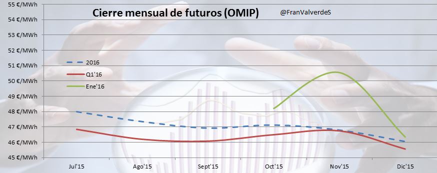 Con los datos de cierre de diciembre, se pronostica un Enero sobre los 46 € (-11% con respecto a Ene'15), un primer cuatrimestre a 45,6 € (sin mucha variación sobre 2015 que estuvo en 45,87€) y un 2016 sobre los 46 € (-8,6%). Con estos datos y por cómo ha empezado el año, esperemos que veamos precios mucho más bajos que los del 2015.
