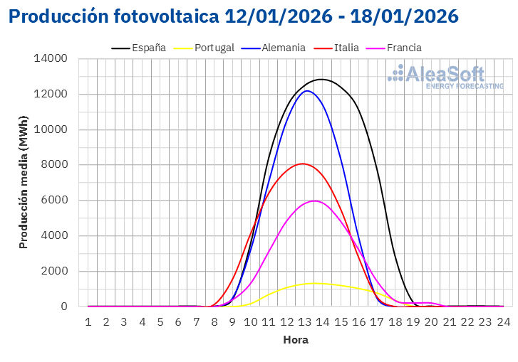 Para la semana del 19 de enero, según las previsiones de producción solar de AleaSoft Energy Forecasting, la producción aumentará en los mercados alemán y español en comparación con la semana anterior. Por el contrario, en el mercado italiano descenderá la generación solar.