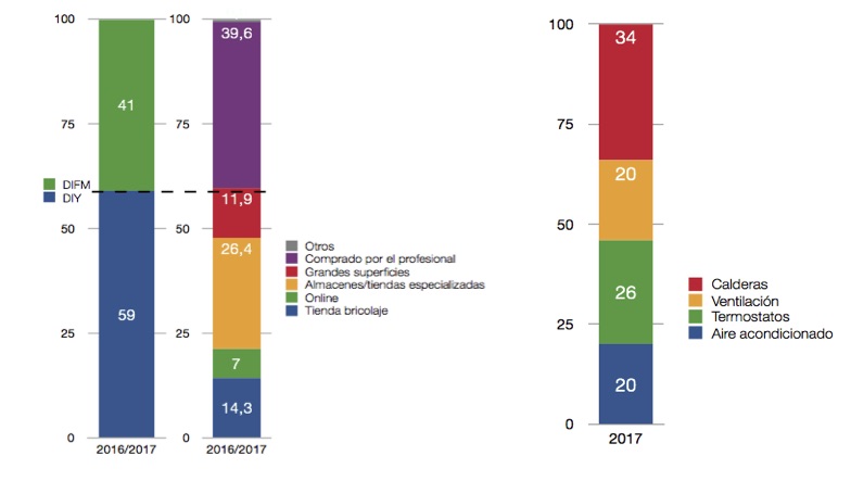 Del total de las compras que se realizaron el pasado año, casi el 60% correspondió al segmento de Do it yourself (DIY), frente al 40% del Do it for me (DIFM), lo que refleja una tendencia de las familias a adquirir ellos mismos los productos e incluso vía online, sobre todo los relacionados con aparatos de aire acondicionado.