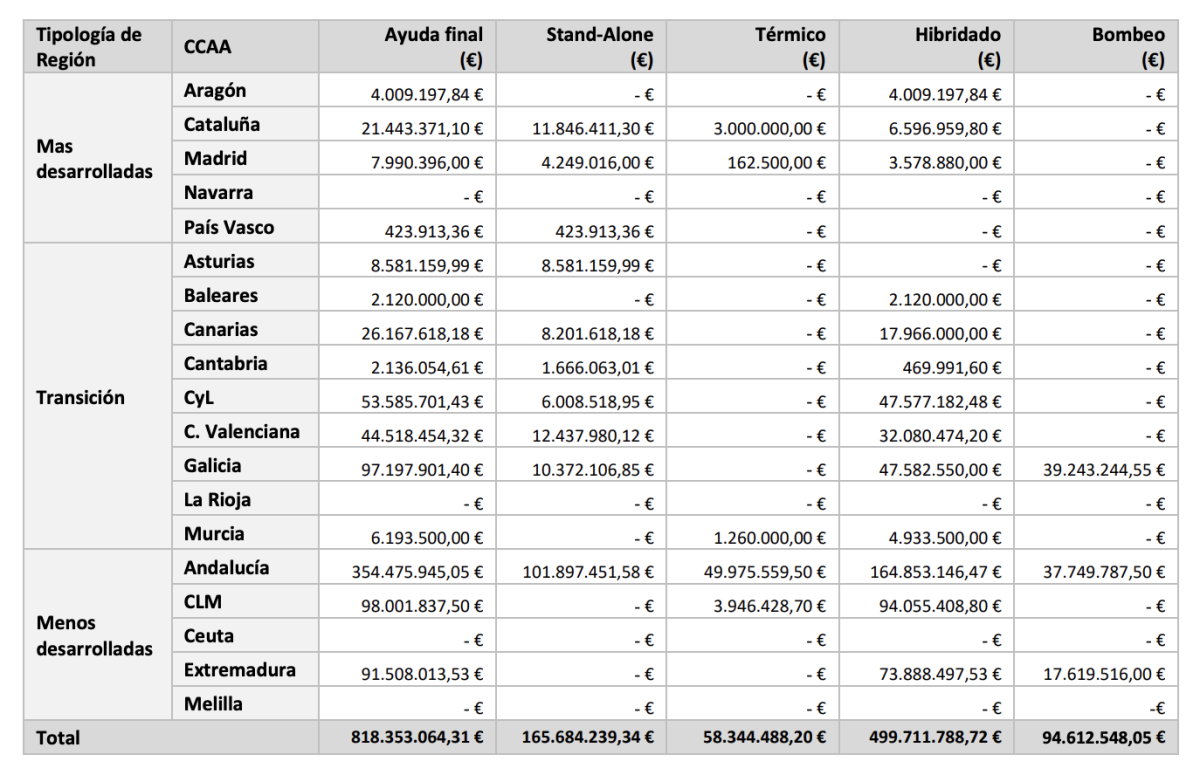 El otro gran movimiento es el de Extremadura que ha logrado un gran proyecto más (Alter Enersun) y por tanto ha incrementado a 91 millones desde los 73 millones que obtuvo en la anterior resolución.