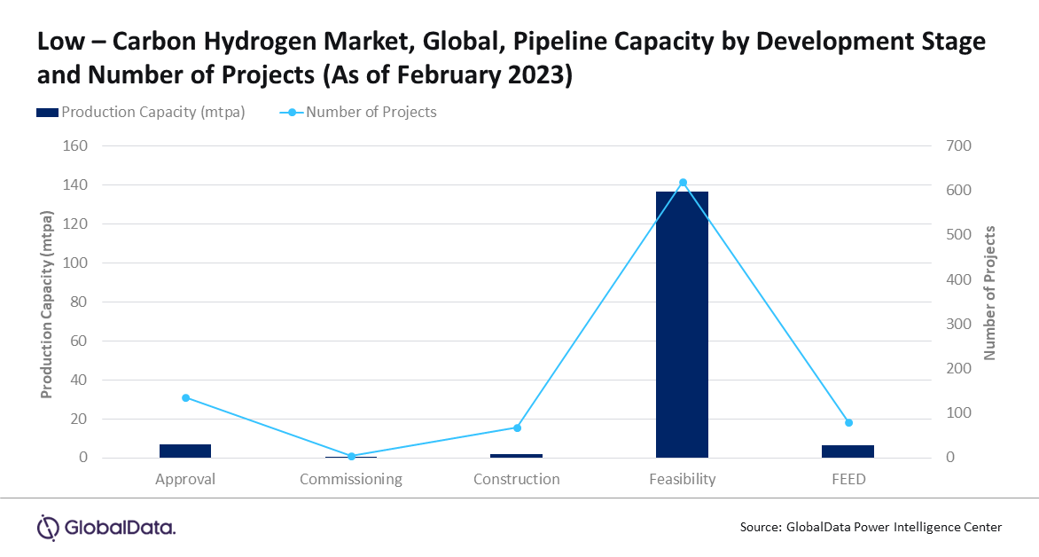 El último informe de GlobalData, "Low-Carbon Hydrogen Market Report, Update 2023 - Global Market Outlook, Trends, and Key Country Analysis", observa que durante 2021-2022, el sector del hidrógeno bajo en carbono dio los primeros grandes pasos, ya que se anunciaron varios proyectos como parte de la estrategia hacia la transición energética.