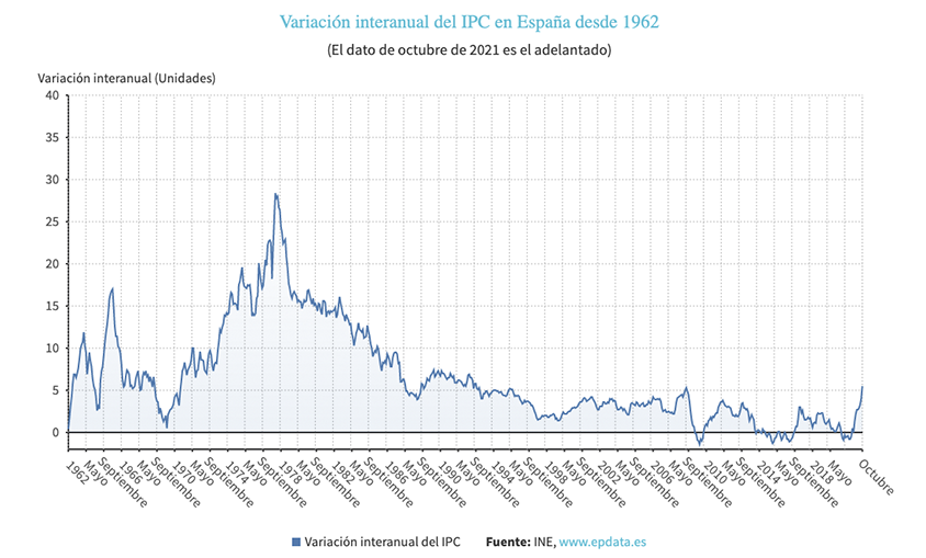 El Índice de Precios de Consumo (IPC) subió un 2% en octubre en relación al mes anterior y disparó su tasa interanual hasta el 5,5%, lo que supone 1,5 puntos por encima de la tasa de septiembre y su nivel más alto en 29 años, debido el encarecimiento de la electridad.
