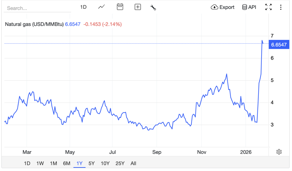Estados Unidos se enfrenta ahora a una de las olas de frío más severas de su historia, tanto por su extensión como por su intensidad. Este episodio ha provocado un fuerte repunte de los precios de los futuros del gas natural, que se han disparado por encima del 100 % en el mercado estadounidense desde que se iniciara el año, a medida que empeoraban las previsiones meteorológicas.