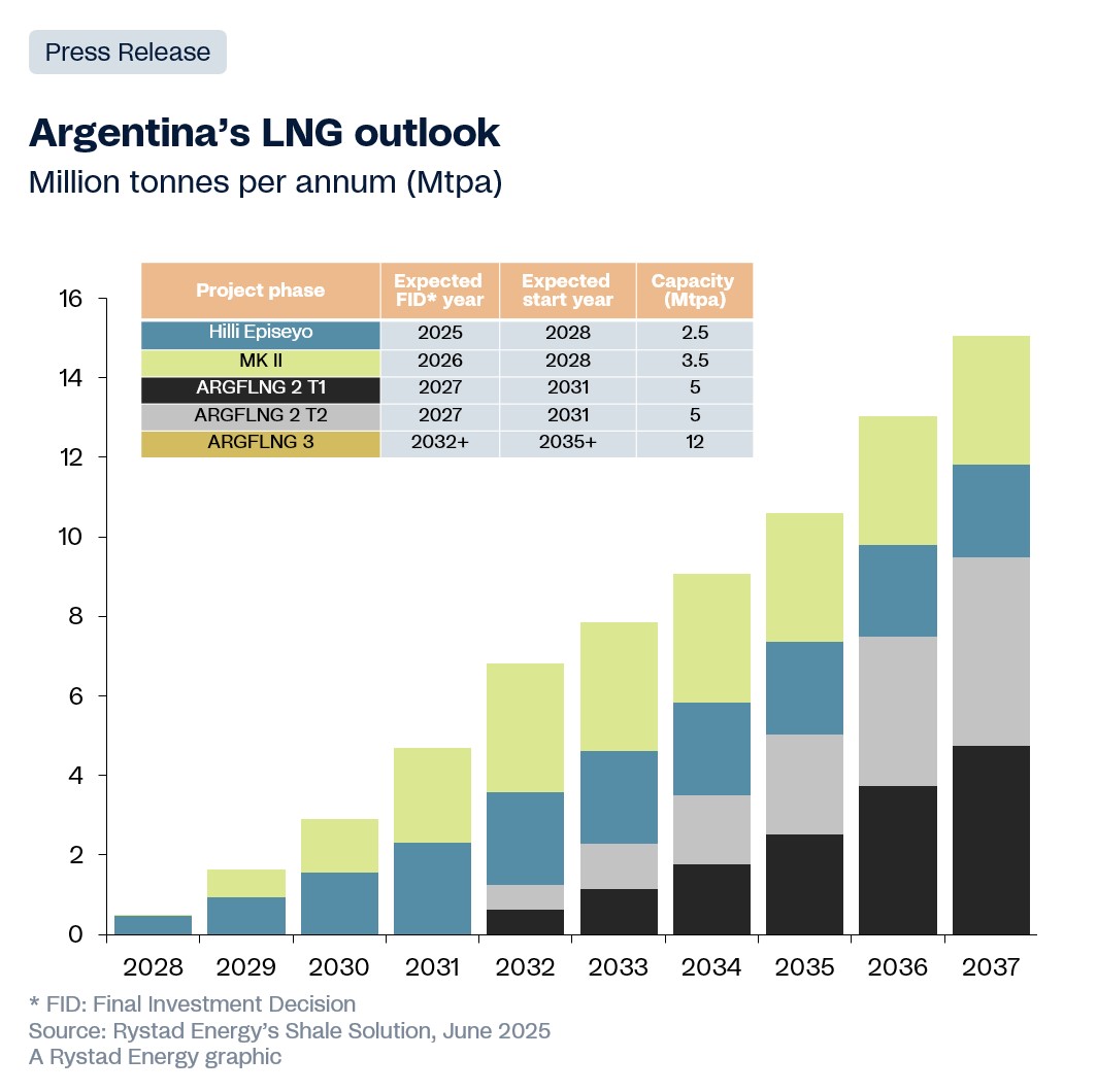 En lo que se refiere a gas natural licuado (GNL), vemos como la apuesta en Vaca Muerta es certera. Por ejemplo, la confirmación de la Decisión Final de Inversión (FID) por parte del consorcio Southern Energy inyectará más de 15.000 millones de dólares con un horizonte temporal de 20 años. También, el despliegue de dos buques flotantes de licuefacción (FLNG) permitirá a Argentina duplicar su capacidad operativa hasta los 6 millones de toneladas anuales, abriéndose paso por vía marítima y reduciendo la dependencia de gasoductos onshore.