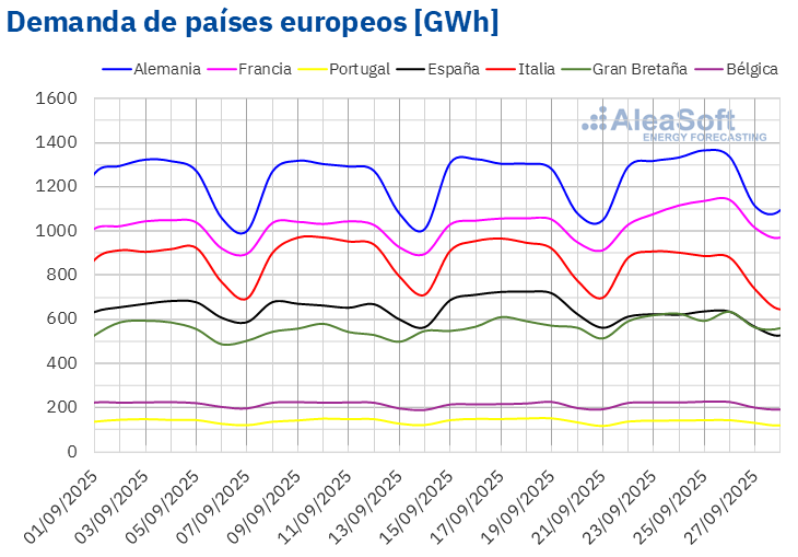 Fuente: Elaborado por AleaSoft Energy Forecasting con datos de ENTSO-E, RTE, REN, Red Eléctrica y TERNA.Fuente: Elaborado por AleaSoft Energy Forecasting con datos de ENTSO-E, RTE, REN, Red Eléctrica y TERNA.