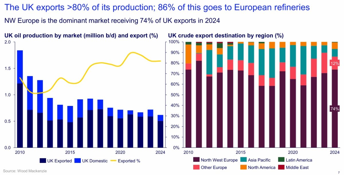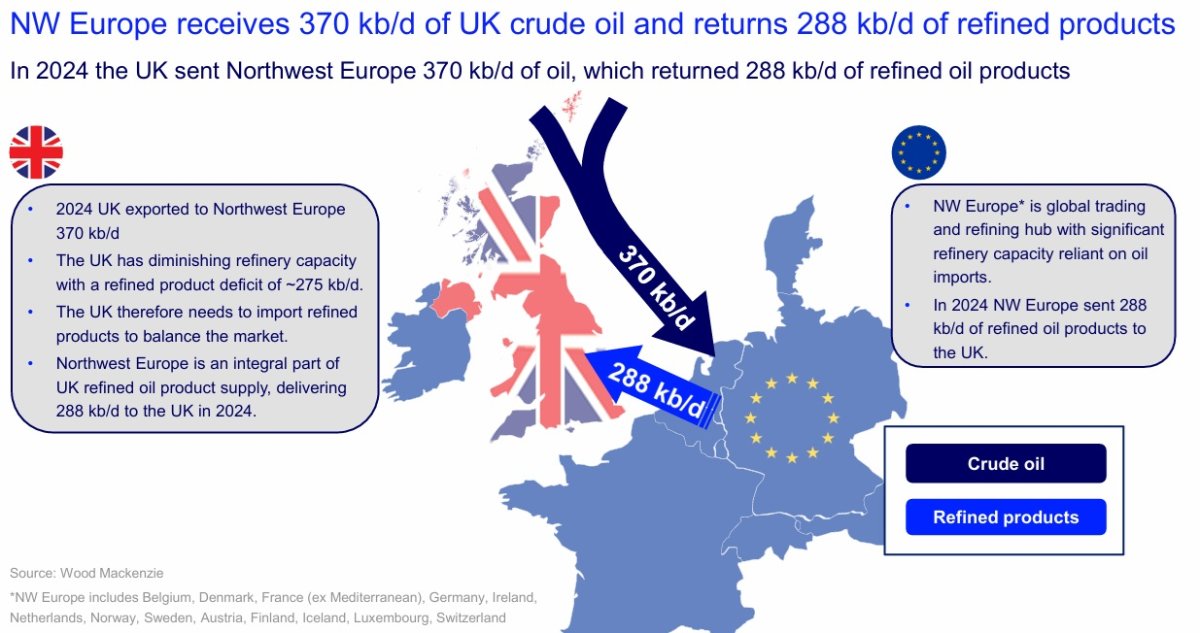 “La conexión petrolera entre el Reino Unido y Europa es profundamente simbiótica, construida sobre décadas de inversión en infraestructura, relaciones comerciales y optimización de la refinación”, dice Malcolm Forbes-Cable, vicepresidente de Consultoría de Upstream y Gestión de Carbono de Wood Mackenzie