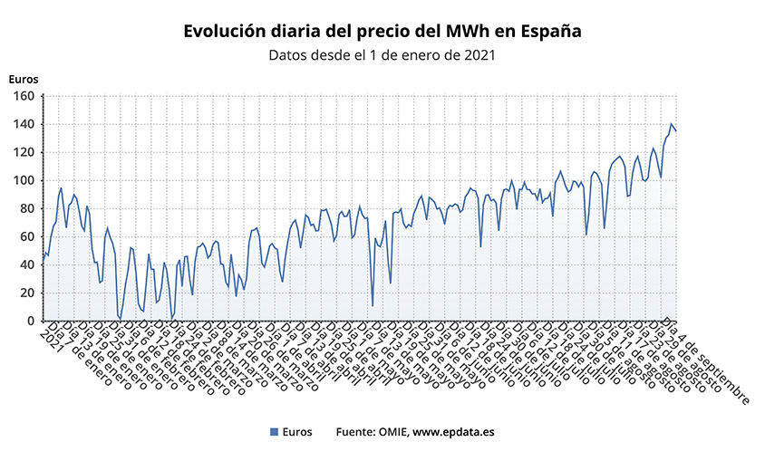Durante el mes de agosto, y en plena ola de calor, el precio fue marcando un nuevo récord tras otro, provocando que el precio medio del mes alcanzase los 106 euros/MWh, el mes más caro de la historia, tras el de julio, que ya marcó otro récord, con un precio de 92,4 euros.