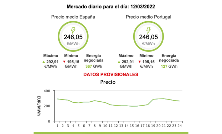 Antes de esa fecha, el precio máximo anual se registró el 17 de enero, cuando el precio medio del 'pool' se situó en 244,67. Sin embargo, también es cierto que en febrero y antes de la invasión el precio de la luz no superó los 211 euros/MWh.