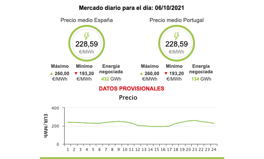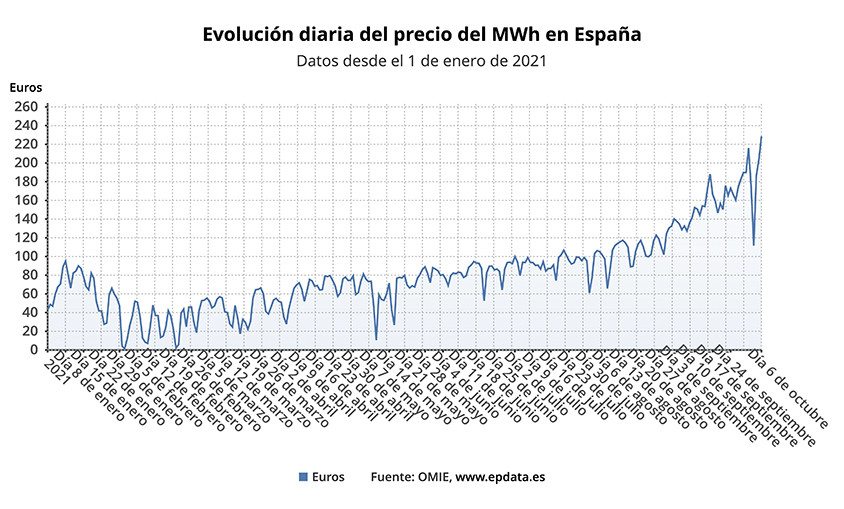 Tras concluir septiembre con un precio medio récord, octubre ya ha registrado los tres precios más altos vistos hasta ahora en solo seis jornadas, y la tendencia sigue al alza con este nuevo registro, según los datos del operador de mercado eléctrico designado (OMIE) recogidos por_ Europa Press._