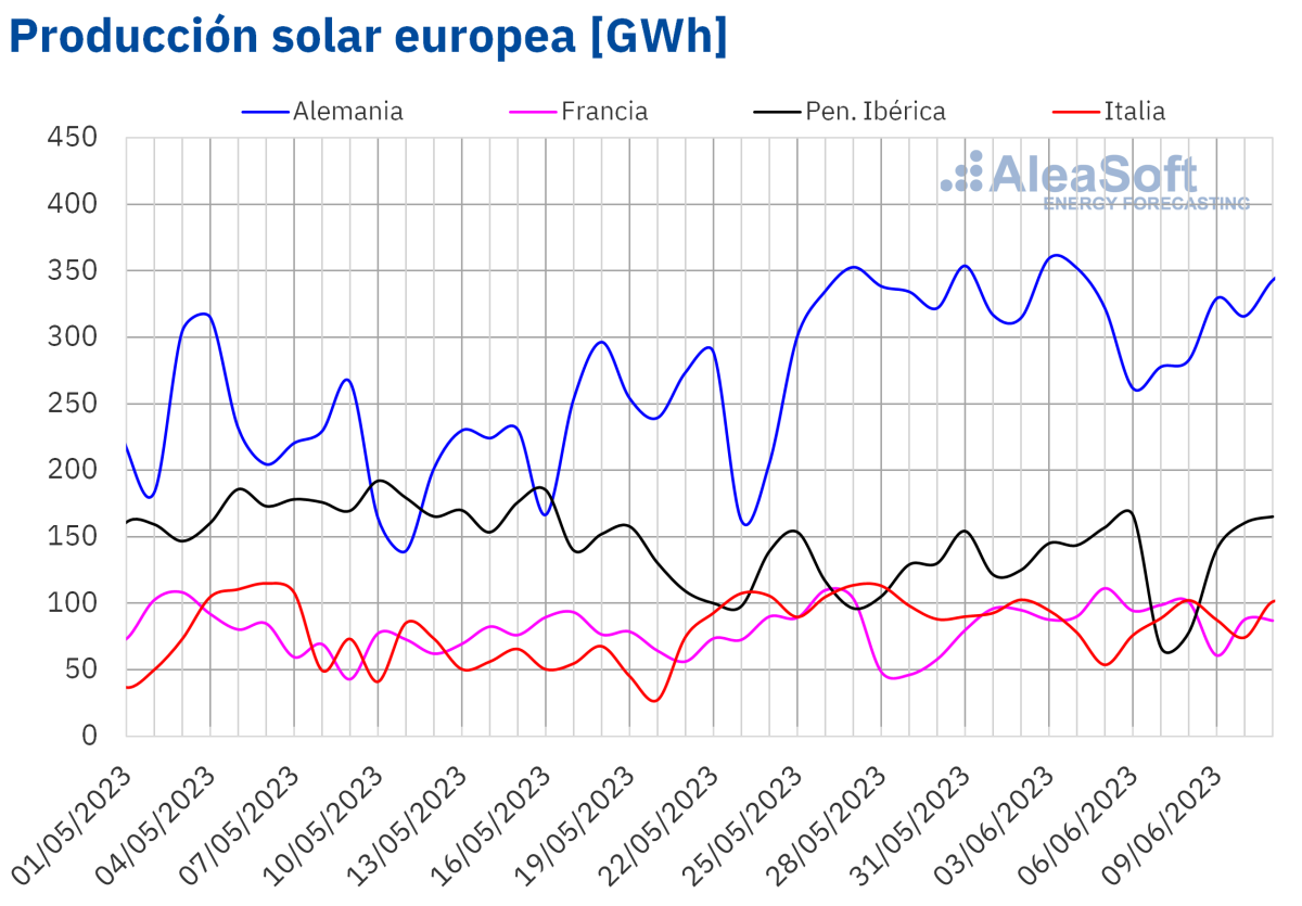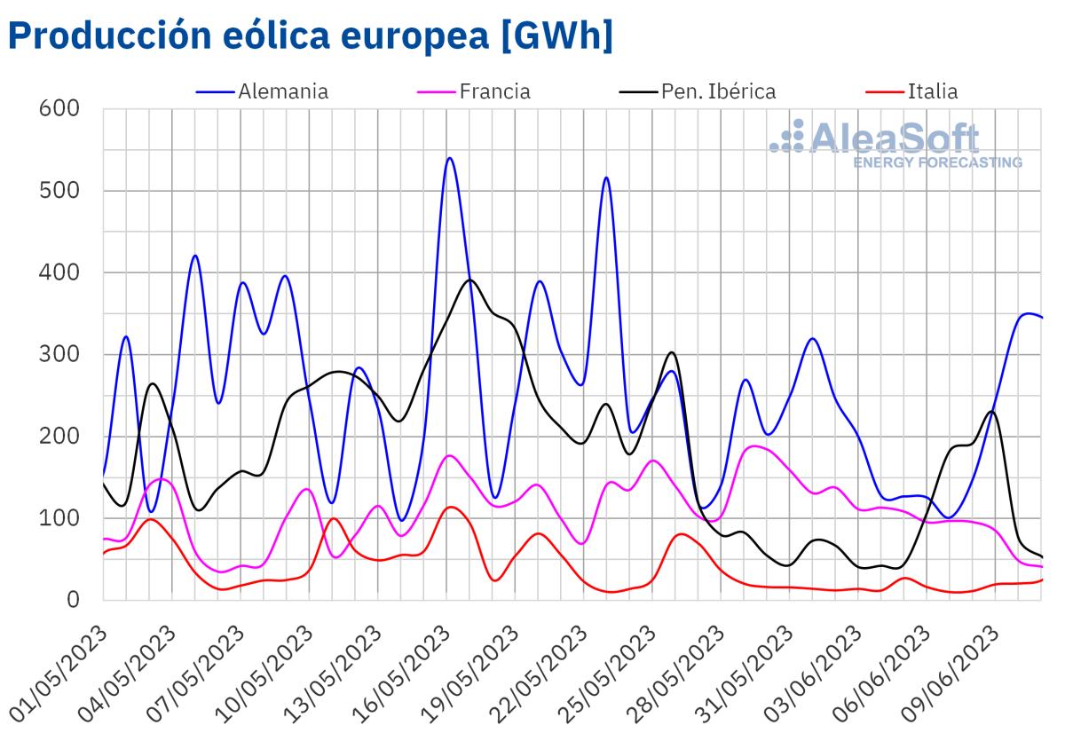 Fuente: Elaborado por AleaSoft Energy Forecasting con datos de ENTSO-E, RTE, REN, REE y TERNA.