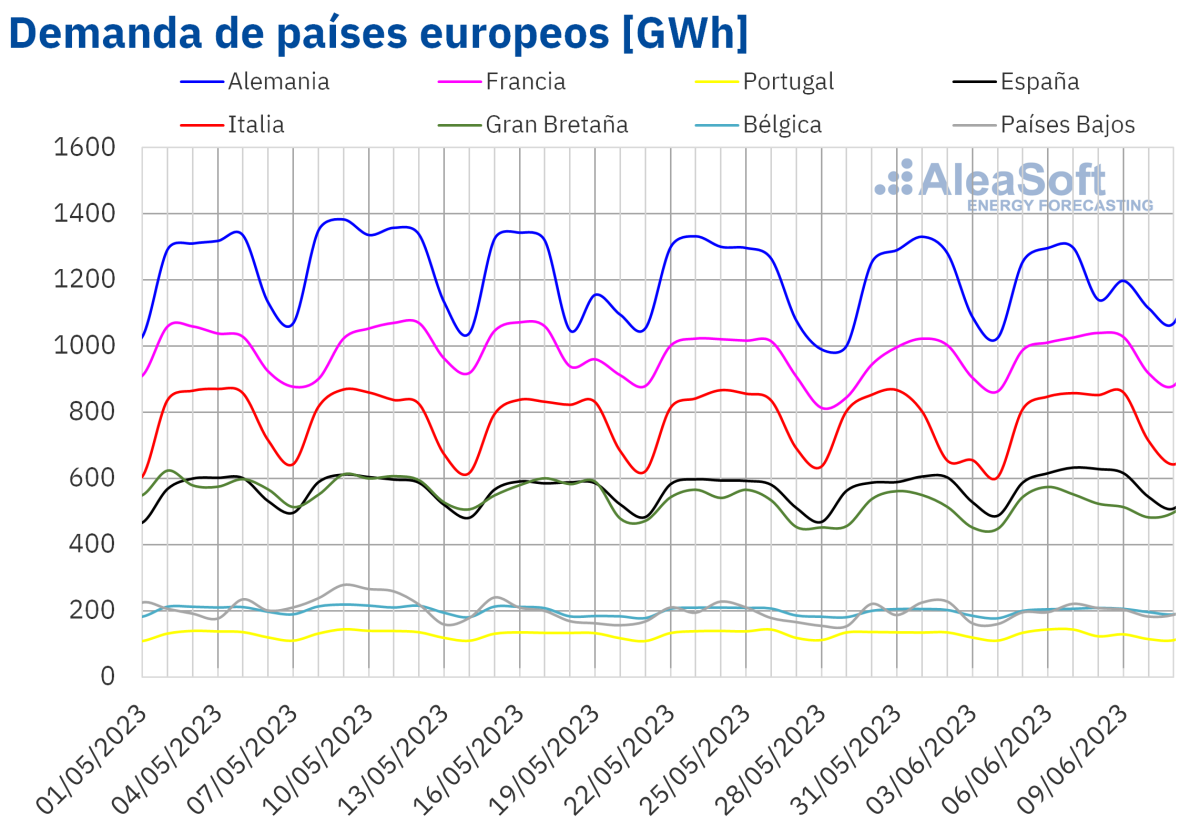 Fuente: Elaborado por AleaSoft Energy Forecasting con datos de ENTSO-E, RTE, REN, REE, TERNA, National Grid y ELIA.