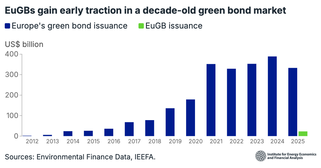 Aunque más de 22.000 millones de euros en emisiones llevan la etiqueta del Estándar Europeo de Bonos Verdes (EUGBS) poco más de un año después de su entrada en vigor, una investigación del Institute for Energy Economics and Financial Analysis (IEEFA) concluye que aún hay margen de mejora.
