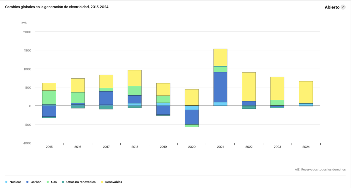 Como consecuencia de la desaceleración del crecimiento de la demanda de electricidad y de las importantes incorporaciones de energías renovables, se espera que la generación basada en combustibles fósiles se estanque en los próximos años, y que la generación a carbón caiga levemente a medida que las eliminaciones y la disminución de la competitividad en los Estados Unidos y Europa se equilibren con crecimiento en mercados como China e India. Se prevé que la generación a gas crezca alrededor de un 1% anual.