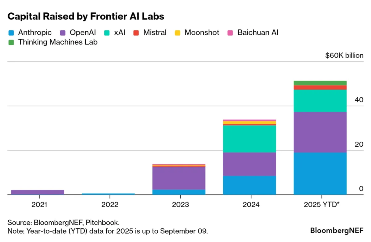 El apetito inversor es enorme. El seguimiento de BNEF a los cuatro gigantes de la nube (Google, Microsoft, Amazon y Meta) muestra que han triplicado su inversión en centros de datos, pasando de los 69.400 millones de dólares de 2019 a los 217.000 millones de dólares en 2024. En los últimos cinco años, se han destinado hasta 82.000 millones de dólares a tan solo siete laboratorios de IA de vanguardia. El acceso al mercado de capitales es crucial para la próxima ola de IA y centros de datos a gran escala.
