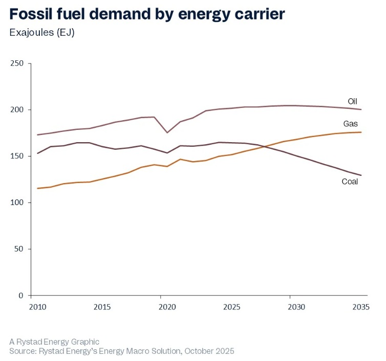 Se prevé que la demanda de petróleo alcance su punto máximo a comienzos de los años 2030, mientras que el crecimiento del gas probablemente se desacelere hacia finales de esta década. Sin embargo, ninguno de los dos combustibles experimenta una contracción abrupta.