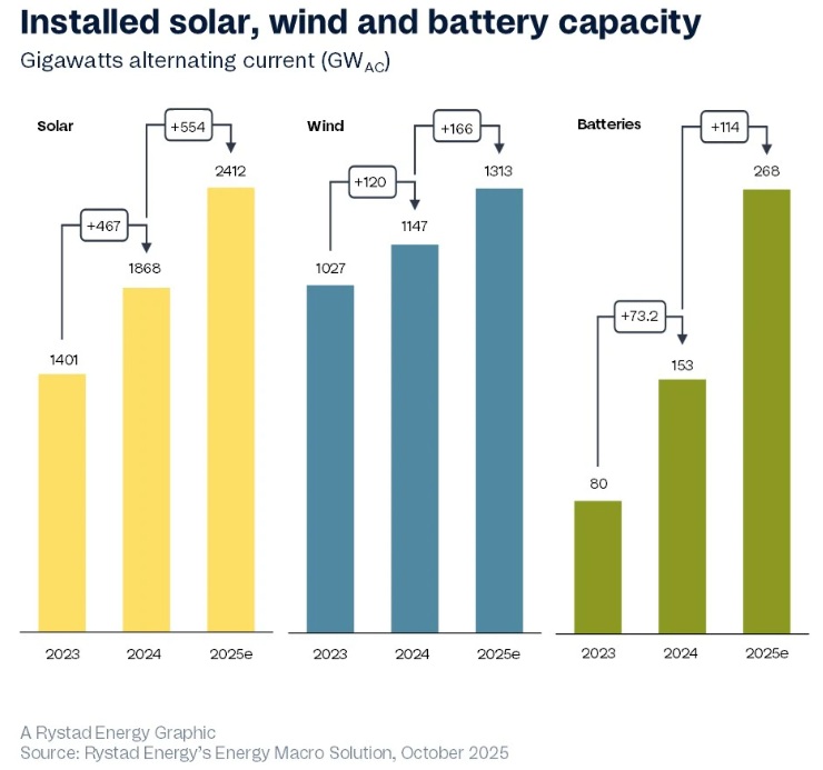 Mientras las naciones se enfrentan al doble desafío de abordar el cambio climático y reforzar la seguridad energética, las energías renovables se expanden más rápido que cualquier tecnología energética anterior, con adiciones de capacidad total de energía eólica y solar para 2024–2025 que superarán los 700 gigavatios (GW).