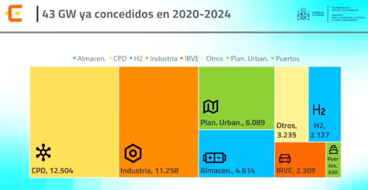 En la presentación en el Ministerio, el Gobierno dijo que 43 GW de demanda ya habían conseguido punto de acceso a la red entre 2020 y 2024. Esto significa más del doble que la actual demanda que hay en España.