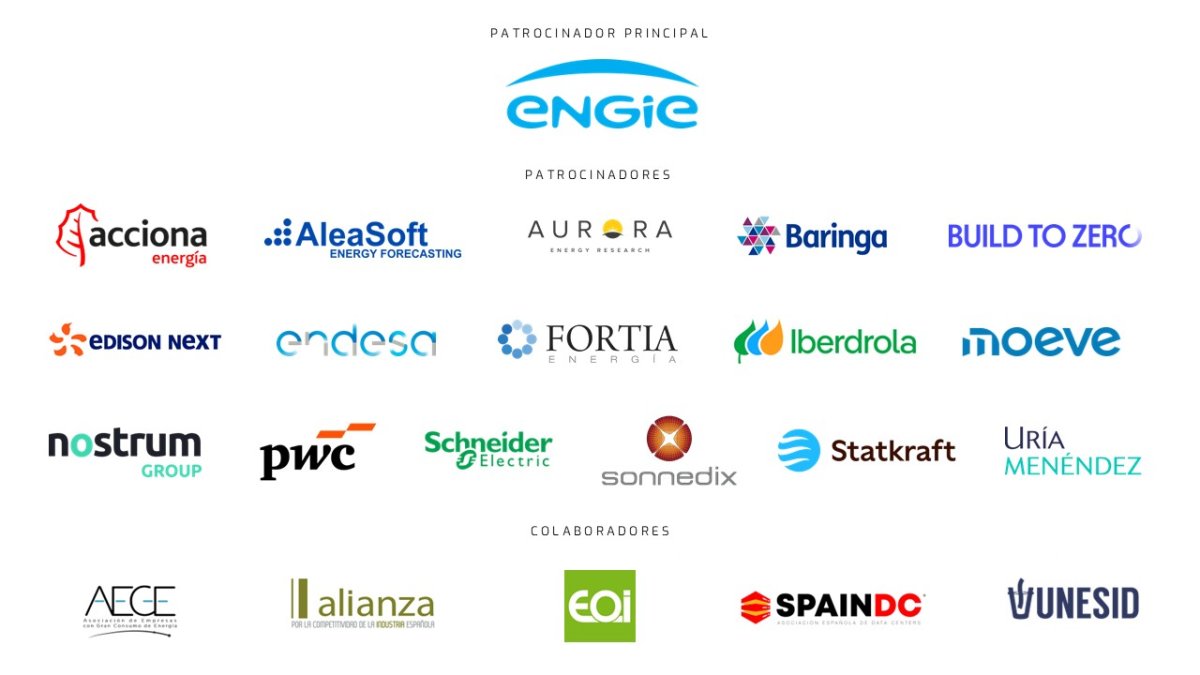 Acciona Energía, Aleasoft Energy Forecasting, Aurora Energy Research, Baringa Partners, Build to Zero, Edison Next, Endesa, Fortia Energía, Iberdrola, Moeve, Nostrum Group, pwc, Schneider Electric, Sonnedix, Statkraft, Uría Menéndez y las asociaciones que colaboran AEGE, Alianza para la Competitividad de la Industria Española, EOI, Spain DC y Unesid.