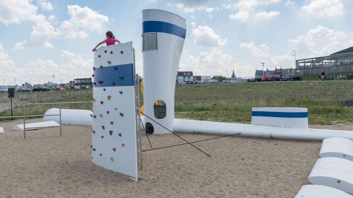 Este parque reutiliza palas de aerogenerador desmanteladas que fueron cortadas y adaptadas para dar forma a distintos elementos del mobiliario como túneles, torres, toboganes y pasarelas.