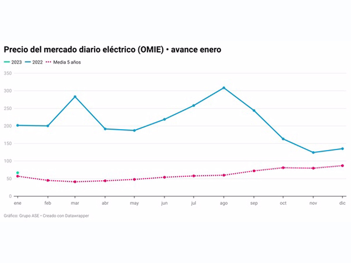 Sin embargo, desde Grupo ASE prevén que la tendencia de los primeros días del año cambie. "La previsión de producción eólica se reducirá a fin de mes, lo que llevará el precio de la electricidad en torno a 100-140 euros/MWh", señalan.