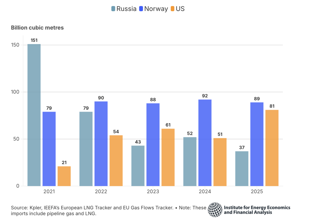 Europa corre el riesgo de caer en los brazos de otro gigante. El GNL estadounidense se convirtió en el salvador de Europa tras la crisis, pasando de 21 bcm en 2021 a un estimado de 81 bcm en 2025. Sin embargo, esta dependencia se está institucionalizando de forma alarmante. Los acuerdos comerciales, como el de 2025 que compromete a la UE a comprar 750.000 millones de dólares en energía estadounidense, están creando un nuevo vínculo de alto riesgo.