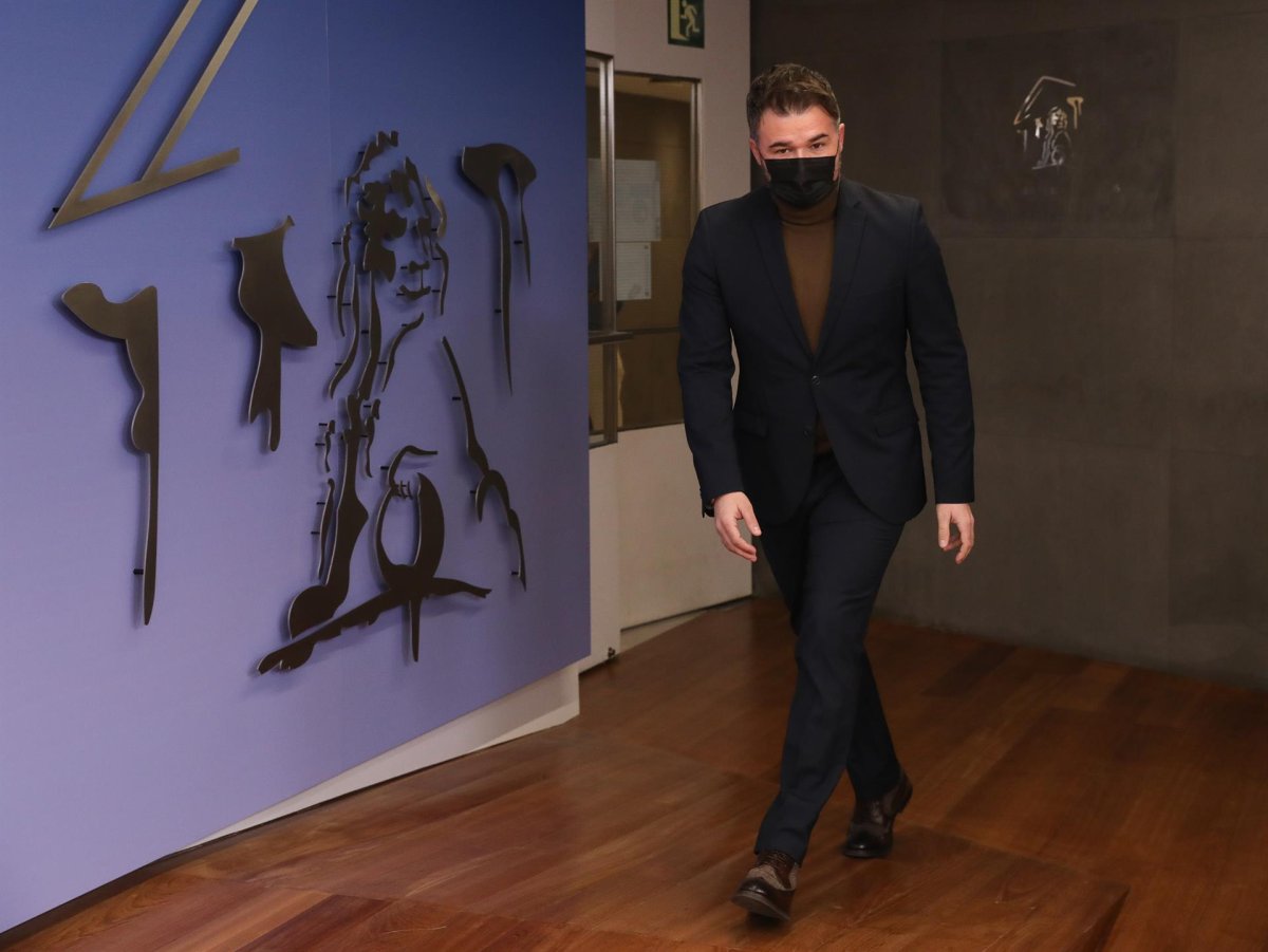 Ante el debate de la proposición de ley que el grupo confederal defiende este martes en el Pleno del Congreso, Rufián ha dicho que su música "suena muy bien y quizás es una solución en el largo plazo", pero que en la situación actual "está abocada al fracaso".