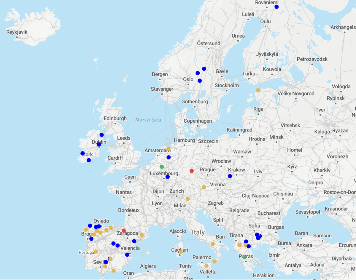 El caso es que el mapa es llamativo teniendo en cuenta de que se trata de todo el continente europeo. (Ver mapa).