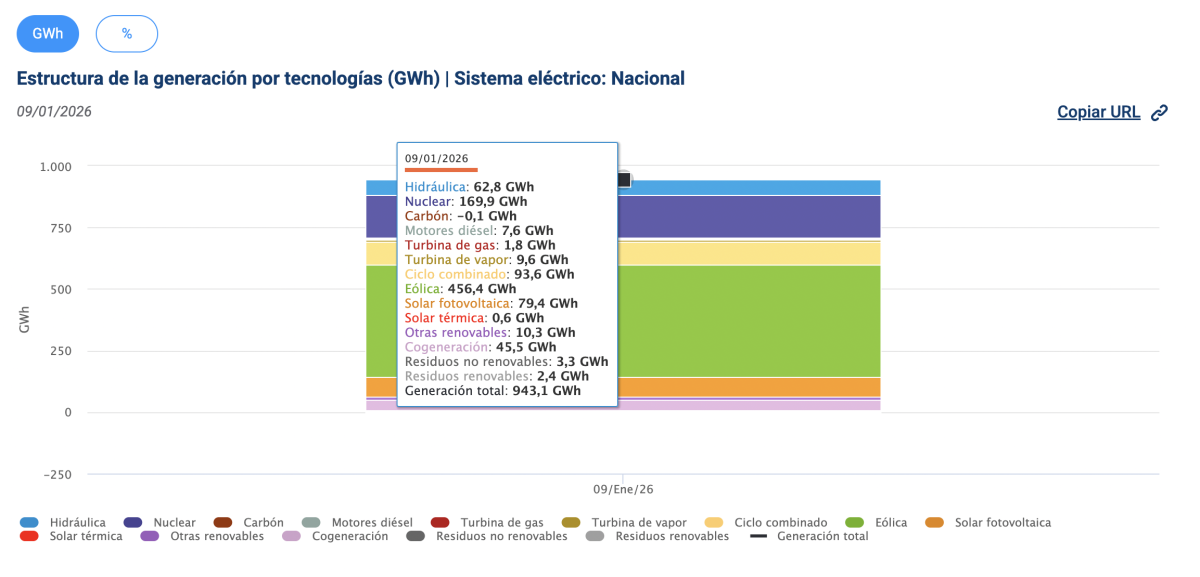 Pues 2026 no ha podido comenzar mejor el año para la energía eólica. El pasado viernes, 9 de enero, registró un nuevo récord de producción tras generar 456,4 GWh durante todo el día.