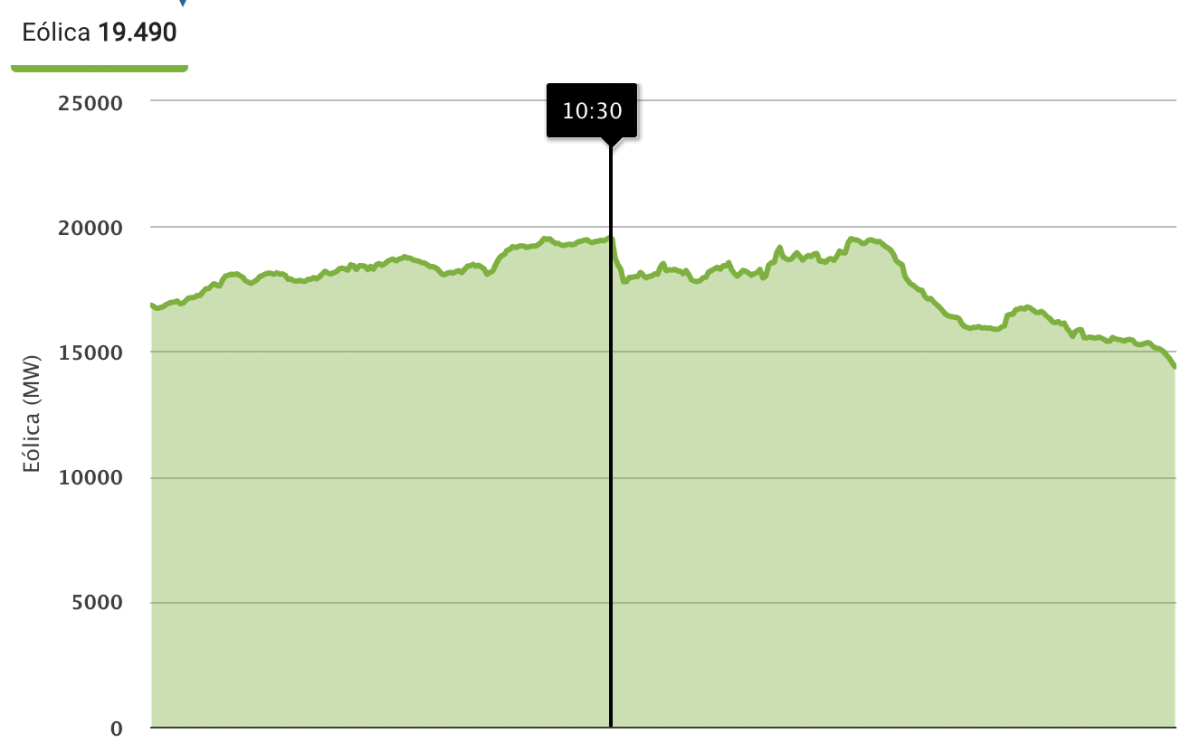 Pero en cuanto a producción diaria máxima, es decir, la punta de generación, no superó los 20.000 MW. Lo que sucedió es que prácticamente las 24 horas del día estuvo la producción entre 18 y 20 GW y eso hizo que la generación diaria se disparase hasta el nuevo récord.