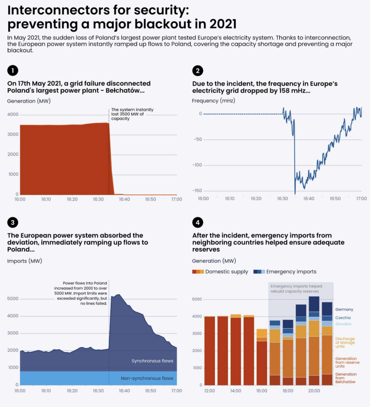 Ember destaca varios ejemplos de cómo los interconectores ayudaron a que no se produjesen varios apagones en el Viejo Continente. Uno de ellos fue el caso de Polonia.